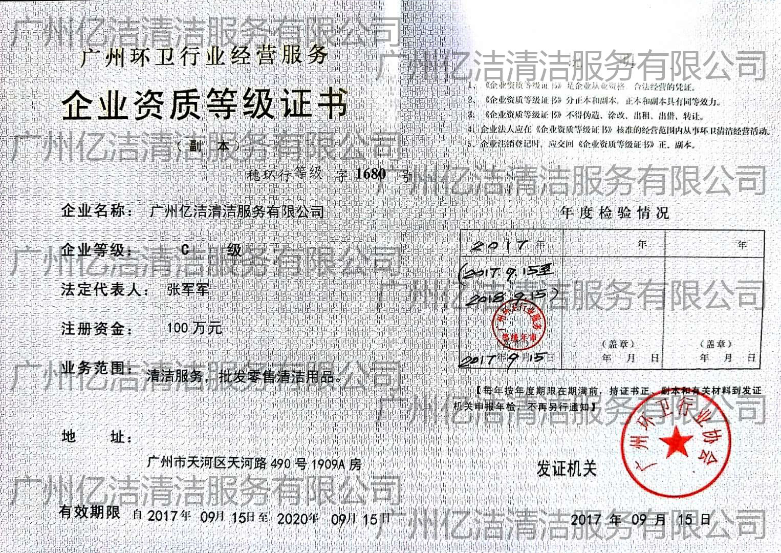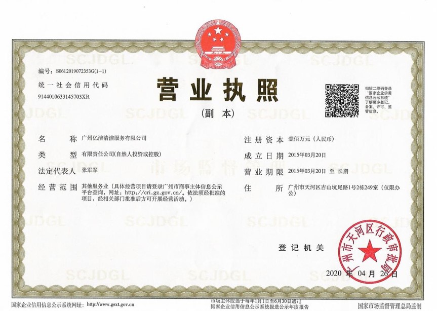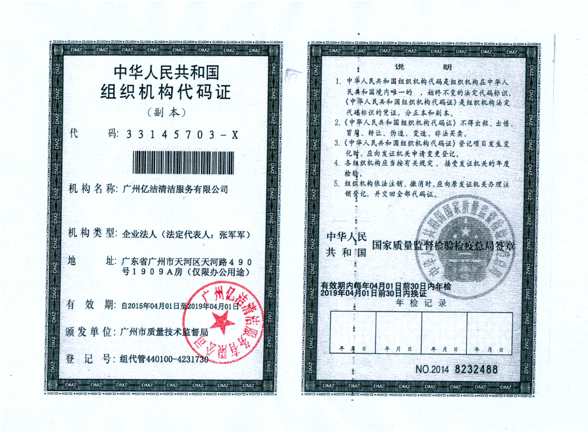 廣州億潔清潔服務(wù)有限公司是經(jīng)廣州市工商行政管理局批準(zhǔn)成立的(注冊資本:100萬元人民幣)。具有獨(dú)立法人資質(zhì)。公司成立2015年,公司具備完善的管理體系和高素質(zhì)管理隊伍,擁有特種技術(shù)人員33名,保潔服務(wù)人員上萬名,覆蓋廣州市,能及時調(diào)配并快速投入高效運(yùn)行。我們的每個員工都經(jīng)過公司的嚴(yán)格篩選,嚴(yán)格培訓(xùn),定期培訓(xùn)后持證上崗以保證服務(wù)品質(zhì),保障客戶的權(quán)利,利益,形象等不受損失。 廣州億潔清潔公司是一家設(shè)備齊全,技術(shù)強(qiáng)大的綜合型清潔服務(wù)公司,為客戶提供完善服務(wù)尊定了堅定的基礎(chǔ)。 司于2010年全面推行了ISO9001質(zhì)量管理體系認(rèn)證和ISO14001國際環(huán)保體系認(rèn)證。先后獲得廣州高層建筑外墻清洗維修作業(yè)【安全資質(zhì)證書】、【廣州環(huán)衛(wèi)企業(yè)等級證書C級資質(zhì)】、廣州疾控中心頒發(fā)的【四害消殺服務(wù)資質(zhì)證】、【空氣治理A級資質(zhì)】、中國石材協(xié)會頒發(fā)的【石材資質(zhì)B級資質(zhì)】等。 廣州億潔清潔服務(wù)有限公司致力于打造專業(yè)、實惠、靠譜的保潔服務(wù)公司,把專業(yè)的事情交給專業(yè)的我們,您放心! 億潔清潔服務(wù)項目: 廣州保潔服務(wù):新建樓宇、別墅、酒店、醫(yī)院、辦公樓、賓館、企事業(yè)單位廠房竣工后開荒及裝修后精細(xì)保潔.工程保潔服務(wù)。 廣州物業(yè)托管:為廣州市各大企事業(yè)單位、賓館、政府機(jī)關(guān)、小區(qū)物業(yè)、酒店及廠房提供專業(yè)化保潔、園林、設(shè)施維護(hù)等管理服務(wù)。 廣州高空作業(yè):高空玻璃幕...[詳情]